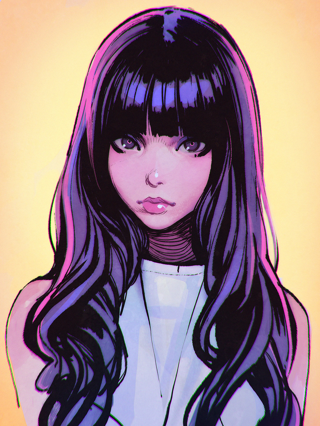 Ilya Kuvshinov est un artiste russe vivant à Tokyo qui pratique l’illustration depuis de nombreuses années maintenant. Son style assez proche du manga est fortement reconnaissable parmi la multitude d’artistes. L’effet photographique et parfois cinématographique qu’il applique sur ses illustrations ainsi que son utilisation des couleurs rendent son travail particulièrement marquant.