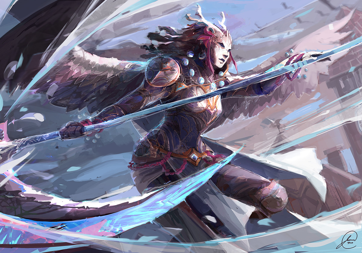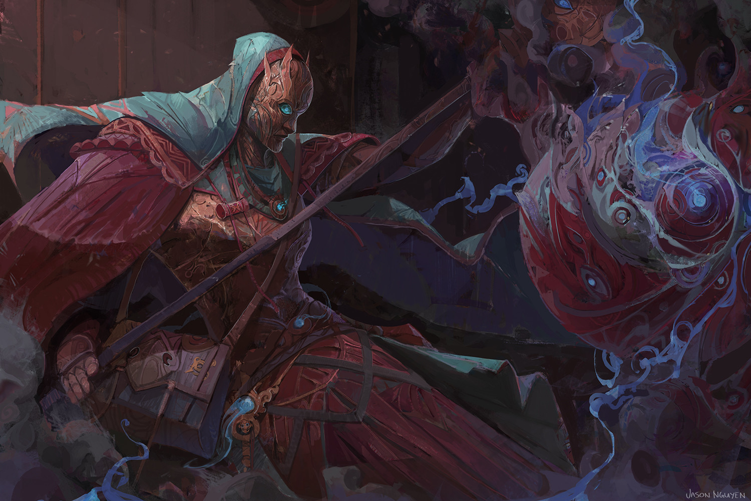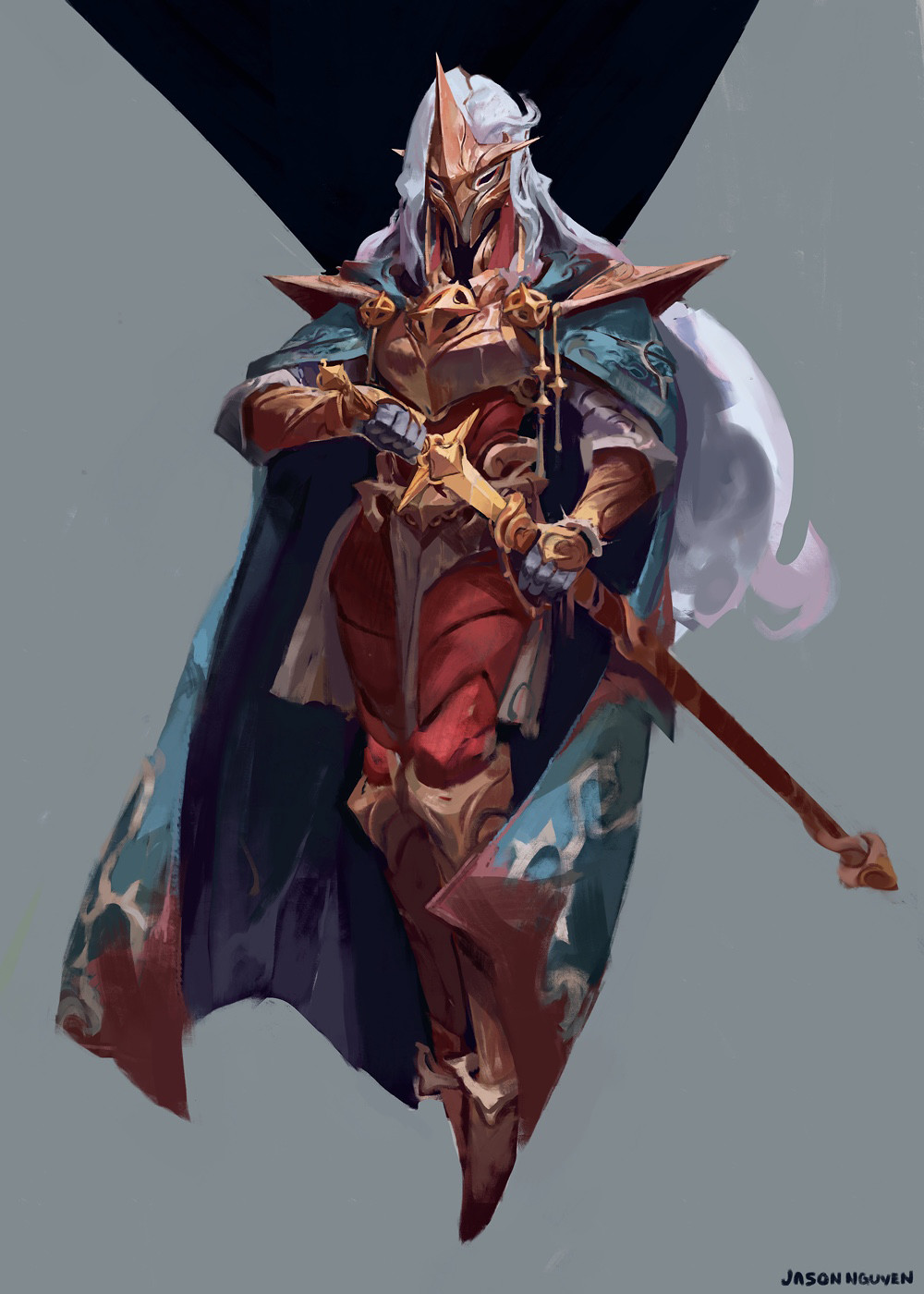 Jason Nguyen est un artiste professionnel qui vit au Canada, à Toronto plus précisément. Il travaille en tant qu’artiste freelance sur de l’illustration ou du concept art et principalement dans un univers de fantasy, et même de high fantasy pour les connaisseurs. On retrouve donc dans son travail des guerrier(e)s en armure, de la magie, des batailles épiques et un contexte historique qu’on pourrait rapprocher du Moyen-Âge. Extrêmement talentueux, il a réalisé des œuvres pour des couvertures de livre, des cartes de jeux et de la création de personnage.