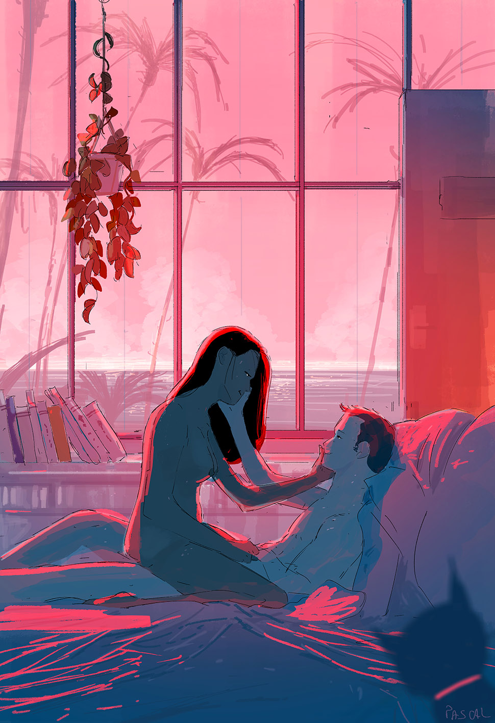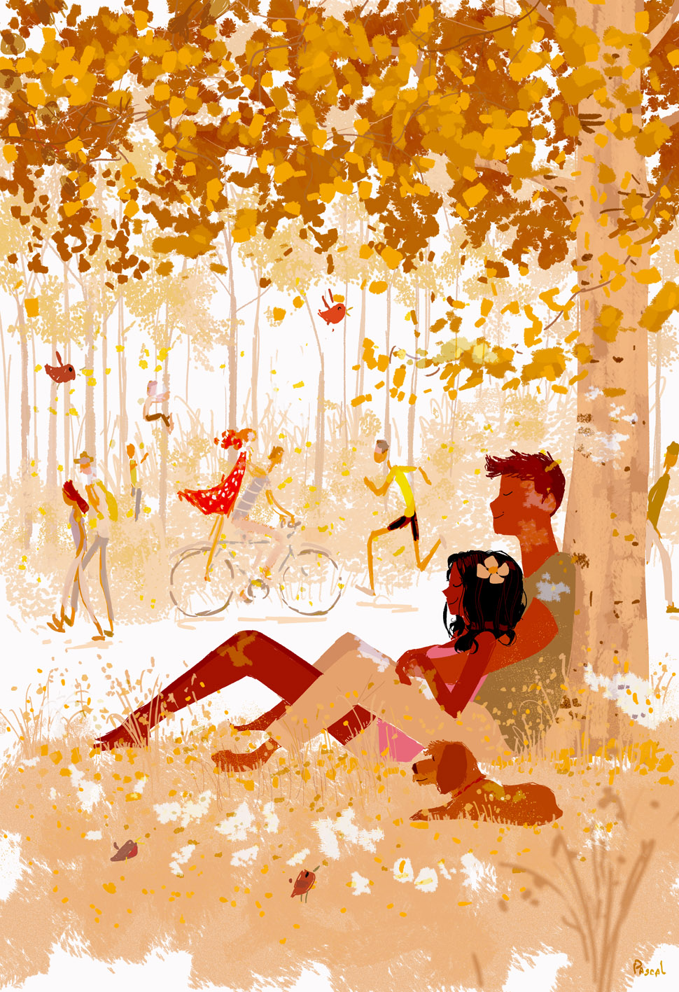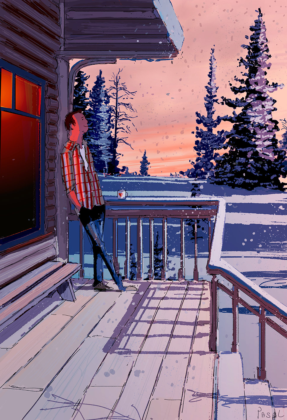 C’est donc une partie de son travail que j’ai sélectionné aujourd’hui pour vous, et que j’ai réduit à 25 illustrations par nécessité. Cependant, ça n’a pas été facile de choisir tant tout son travail est intéressant et significatif. Il le dit lui même, il dessine souvent à partir de ses propres expériences et des moments importants qu’il a pu vivre. Il illustre très souvent des joies simples, des satisfactions quasiment quotidiennes si on sait les voir : une grasse matinée en couple dans un lit baigné par le soleil, une boisson chaude sur sa terrasse par une soirée enneigée, une balade en forêt, une soirée entre amis au bord de la mer… Les exemples sont nombreux et Pascal Campion arrive à les retranscrire avec beaucoup de brio. Ses traits sont imprécis et rapides mais ses ambiances sont toujours pleines de vie et de chaleur, rendant le tout vraiment crédible aux yeux du spectateur.